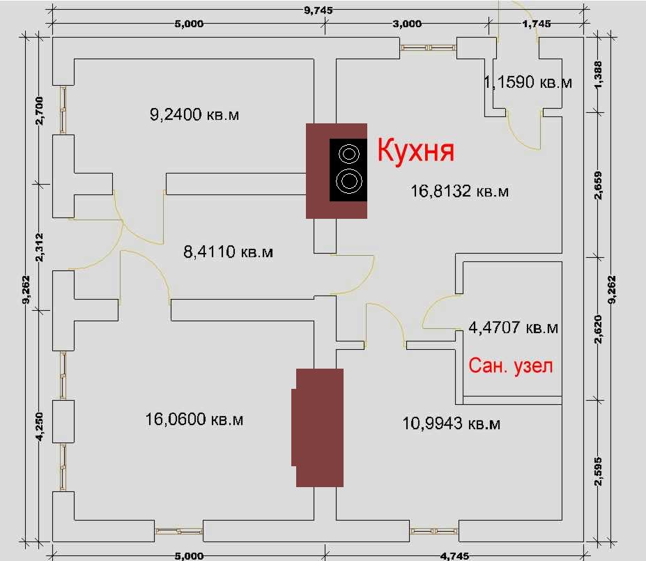 Считаю, что в каждом доме вполне можно обойтись двумя печами: одна Отопительно - варочная с плитой, возможно с хлебной камерой, а вторая печь-камин с дверцами со стеклом в большой комнате. Отопление санузлов должно быть вполне достаточным от переноса воздуха в помещениях. Если нет - то на такие маленькие комнаты можно сделать электрические или водяные теплые полы.