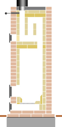 2) старый щиток был с трубой над топочной дверцой. Можно ли сделать данную печь с таким разворотом? Размер старого щитка был 3 на 4 кирпича.