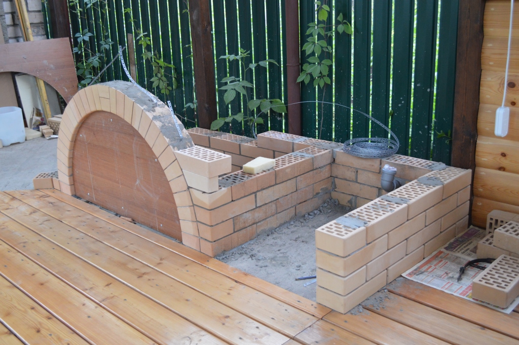 Не много не успел доделать арку и начал облицовку со стороны казана.