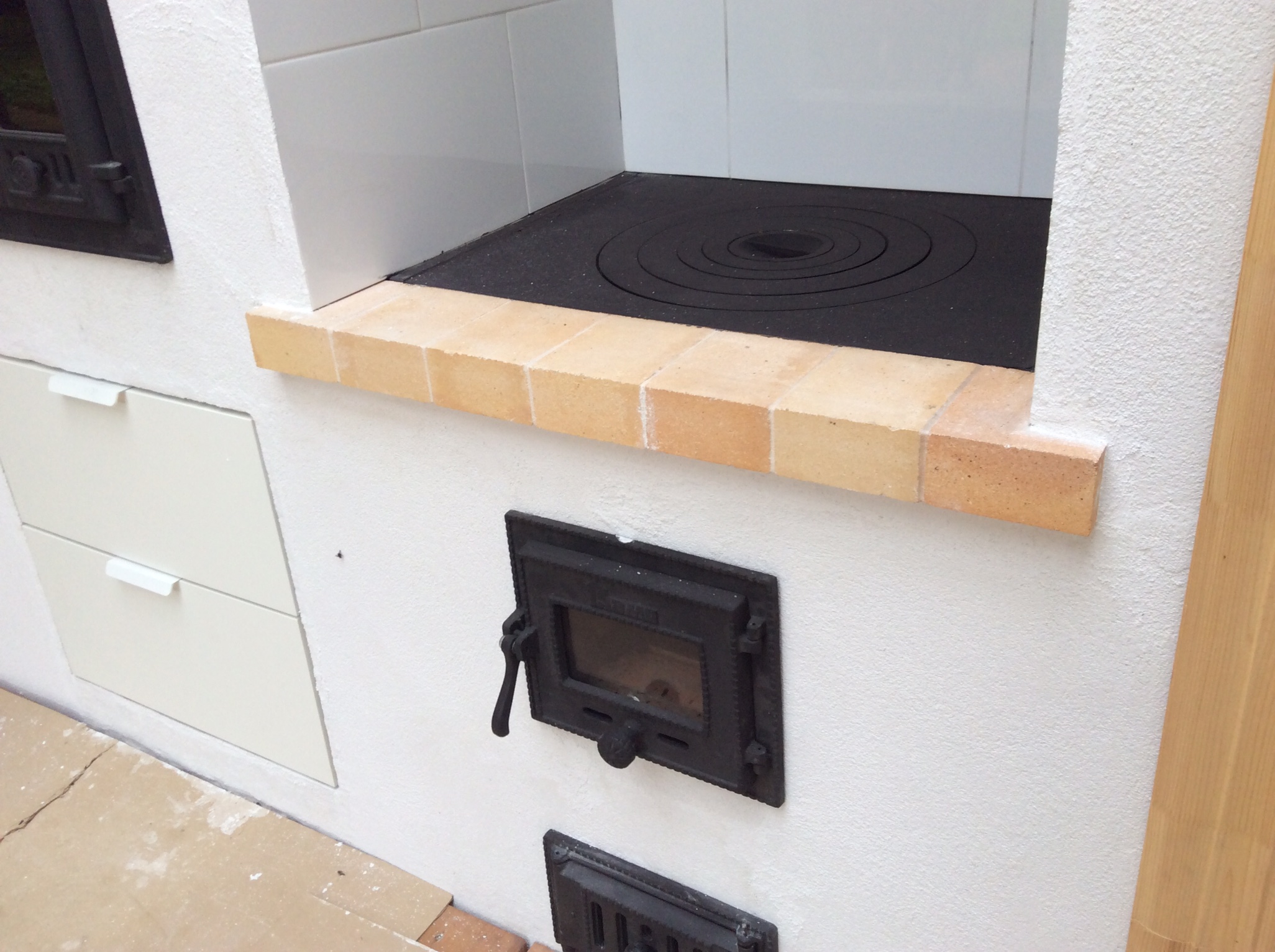 Прошу помочь советом в следующей ситуации. Печник закончил барбекюшницу: 275 см. ширина 90 см. в глубину (это важно, так как он утверждает, что мало места), слева ниша-мангал, по центру а-ля русская печь со стеклянными дверками, справа плита под казан. Причем труба от топки под плитой выведена отдельной металлической трубой сзади конструкции, она входит обратно в конструкцию над мангальной нишей в общую трубу. Дымоходы разделены в этой общей трубе. Фронт оштукатурен по типу побелки, сзади кирпич покрыт штукатуркой попроще, а она, в свою очередь, под слоем какого-то средства "от воздействия внешней среды", так как близко край крыши беседки.