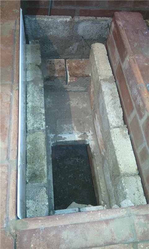 От чего так старался уйти к тому и пришел, пришлось разбирать часть кладки и делать небольшой боровок.