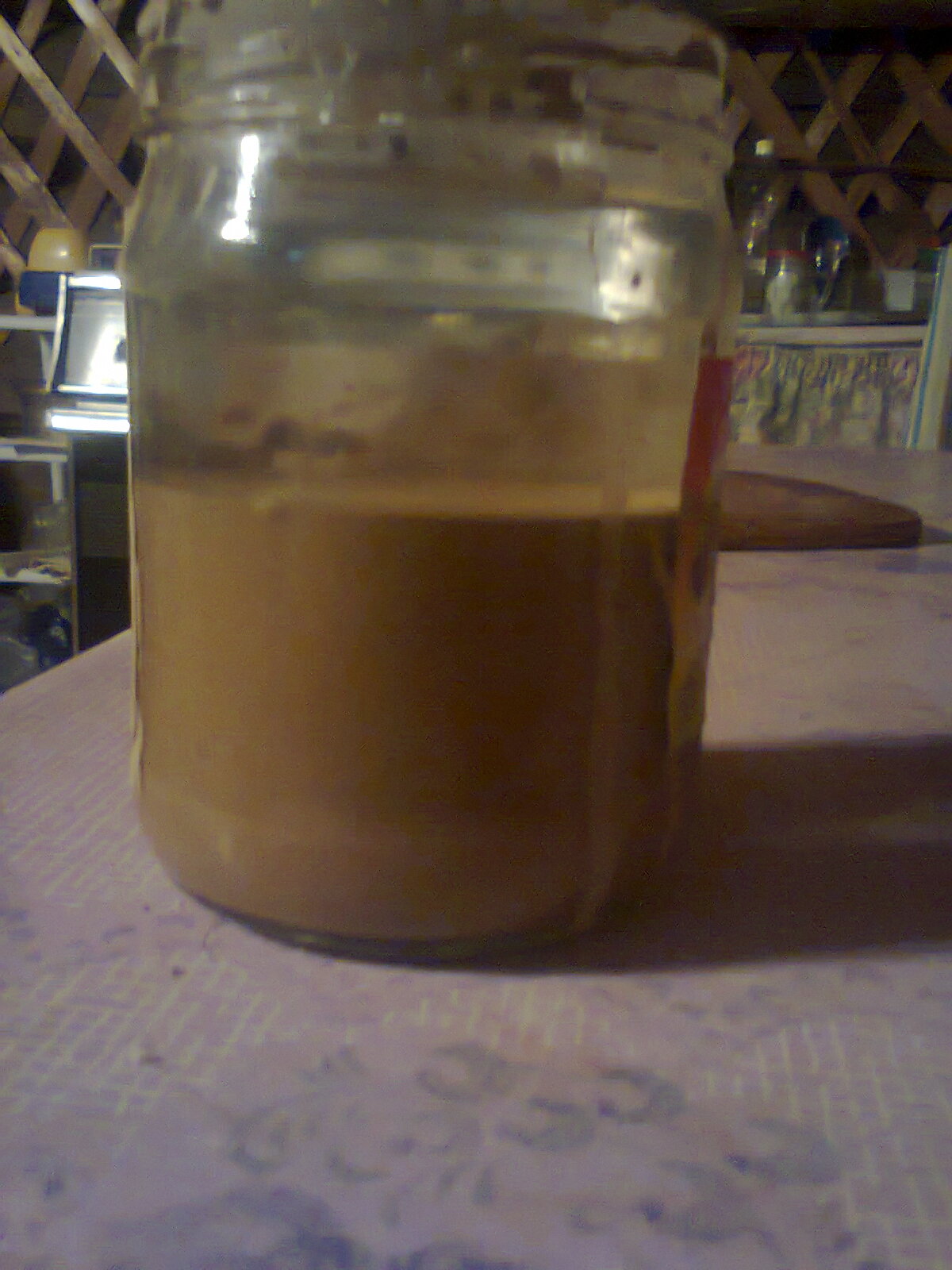 В одной банке справа купленный готовый глиняный порошок из красной глины, при размешивании образовался тёмный осадок, но что интересно полностью за 3 дня смесь так и не разделилавь а осталось во взвешенном состоянии и с осадком.