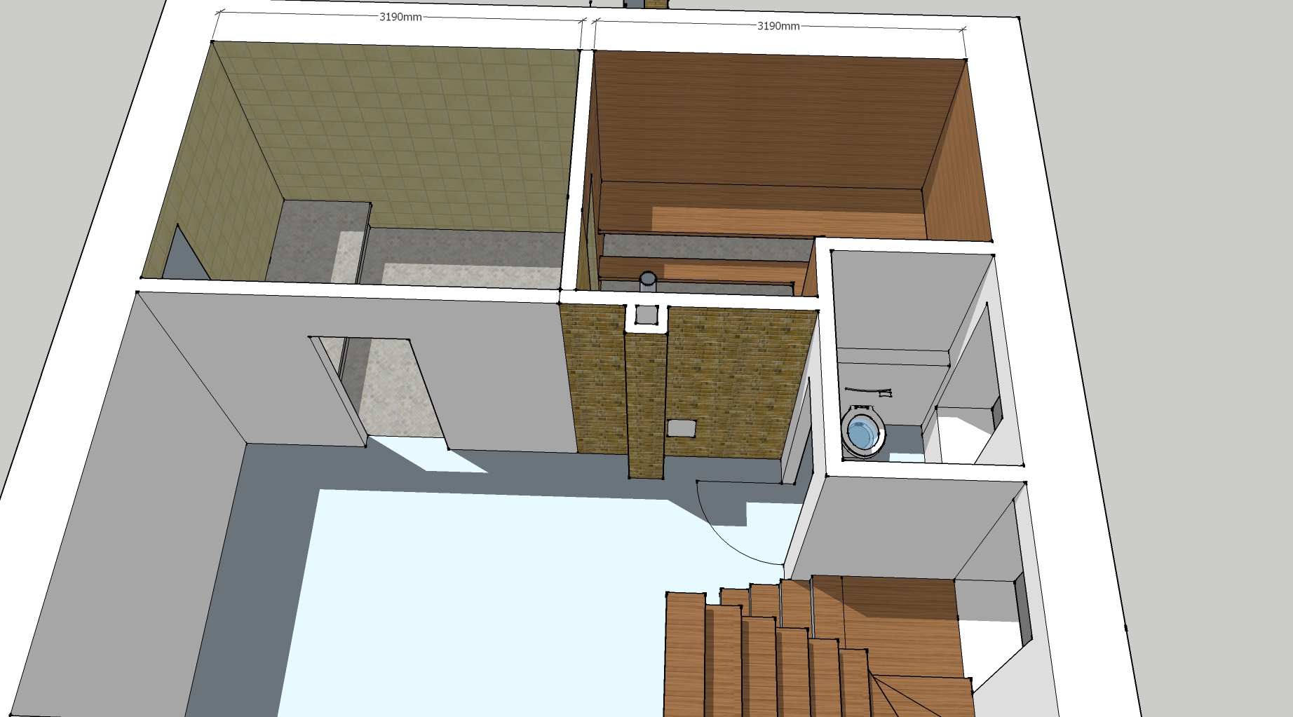 Прикрепляю план первого этажа, и пару эскизных визуализаций по поводу того как это должно выглядеть, нет не так, как я предполагаю это может выглядеть, функционально не визуально =) (это вариант без кирпичного дымохода, практически сразу на нержавейку)