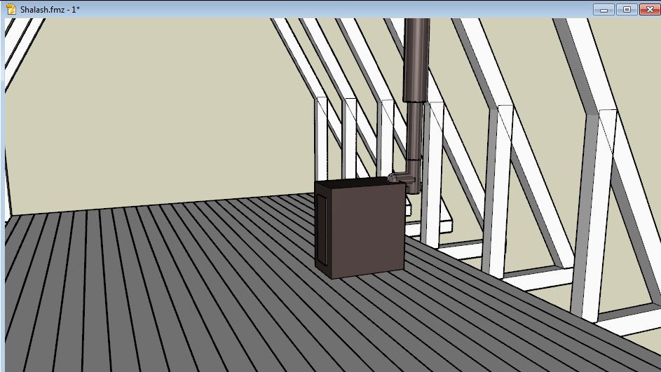 Если рисунок в масштабе, печь встанет ближе к центру комнаты, у вас первая труба, половина остальных. |