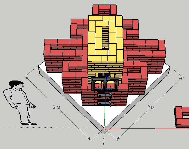 | Уважаемые Гуру печного дела, сезон на исходе, пора задуматься о следующем! Настоятель нашего храма игумен Герман, попросил спроектировать печь в зимний храм. Место под печь только в одном углу есть около 2х2 метра, там же и труба вмурована в стену(храм 1725 года). Высота храма около 15 метров,ширина и глубина около 10. теплопотери помещения посчитать не реально. Посидел я, покумекал и набросал проект мегамонстра с подовой топкой и каминной дверцей.Оцените пожалуйста. |