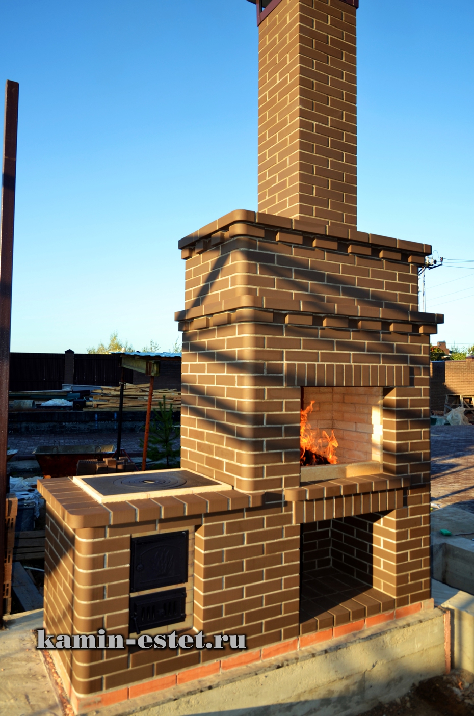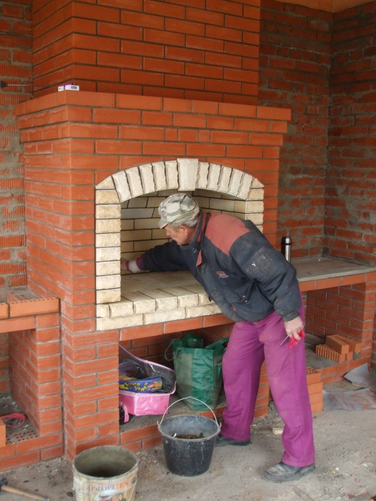 Достойная работа. Да и так все, по моему, понятно. Гарантировано от перегрева облицовки. И смотрится красиво. Нет проблем с трещинообразованием в районе состыковки барбекю с дымоходом от плиты? Имеет ли плита опускной дымоход или действует напрямую вверх?
