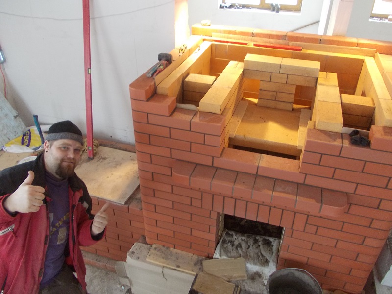 | За основу была взята колпаковая семитричная каминопечь по тех решения Кузнецова с семинара с Литвы ( но внутрянку периграли немного). Лежанка не отключаемая но регулируемая по нагреву перекрытие 2 ряда в дальнейшем возможна будет покрыта клинкерной плиткой для лестниц. |