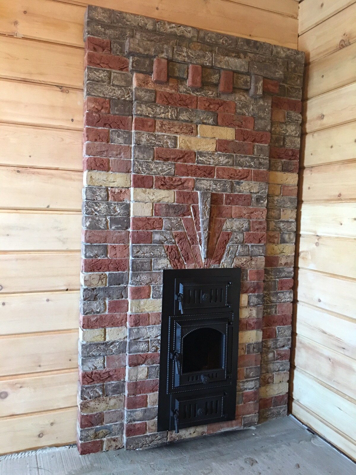 Авторская банная печь Миши выглядит очень эффектно. С хорошей пожароопасной зоной из суперизола. На стене в отделке не просто плитка а спиленая пласть от "бельгийского-состаренного" кирпича.