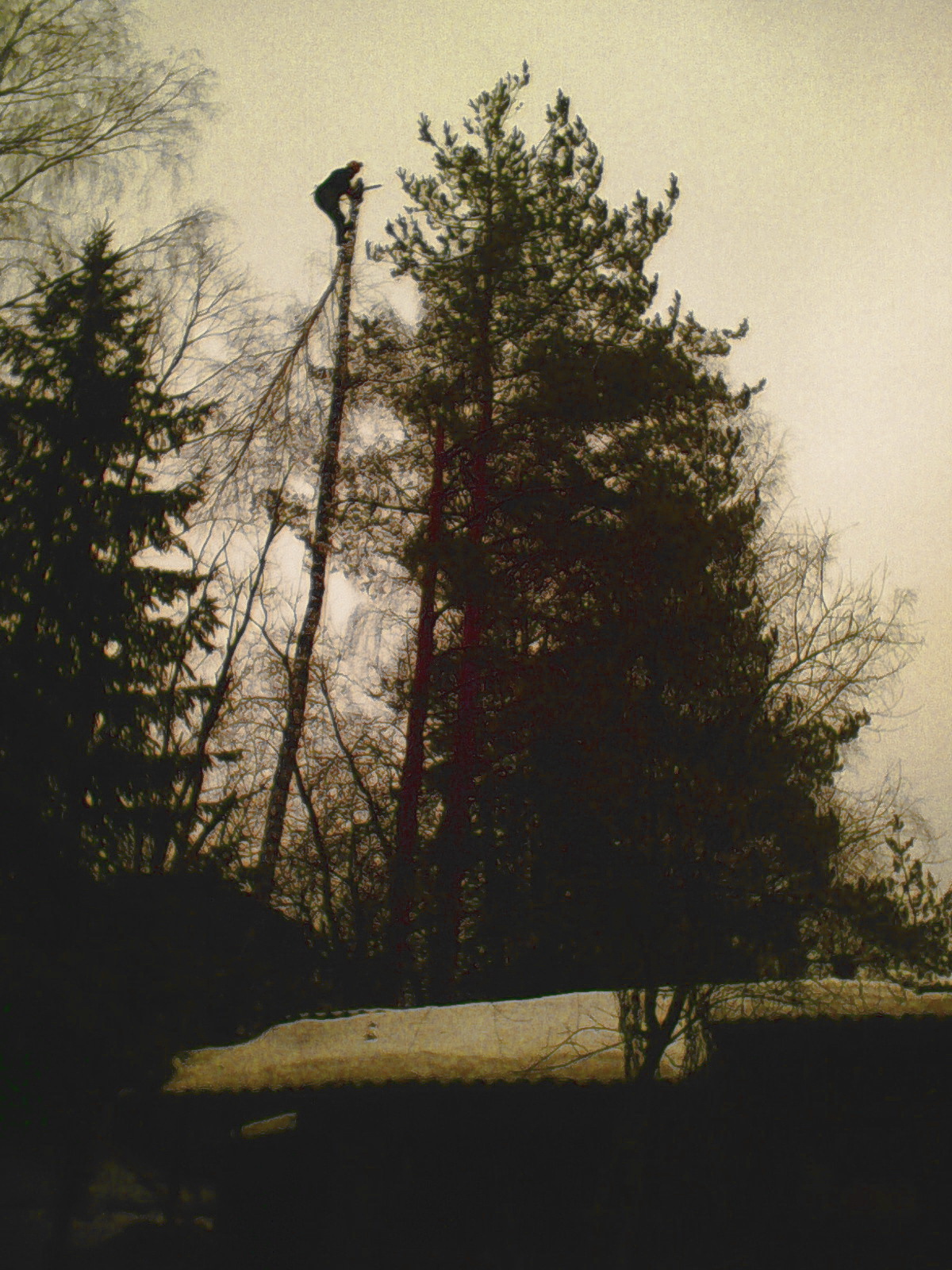 Это так продвинутые дачники лес валят, начиная с верхушки. По полешку, по полешку...
