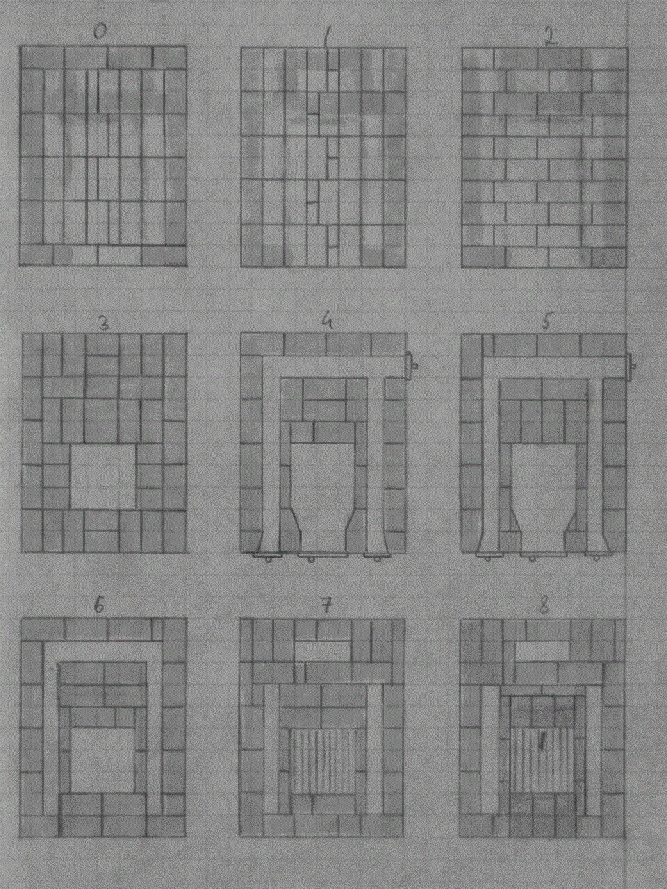 В этом году планируем заиметь двухэтажную печь с потенциально высоким КПД по мотивам печей проф. Грум-Гржимайло. Конструкция предложена местным спецом. Ниже представлены сечения и порядовка, есть несколько недорисованных рядов - они повторяют два идущих перед ними. Вкратце: конструкция топки с камерой догорания обеспечивают свободное движение топочных газов, стрелка с ВВ показывает подачу вторичного воздуха в камеру. Топка выложена огнестойким кирпичом на ребро, сверху будет некоторое сужение – хайло. Выше расположена хлебная камера, над ней – колпак, обогревающий второй этаж. Компоновка и размеры печи в основном обусловлены проемом, оставленным между этажами. Крупные квадраты в рядах 26, 33 – кирпичные плиты размером порядка 400х400х65, у нас продают такие:). В ряду 32 свод хлебной камеры перекрывается стальным уголком и сверху такими плитами. Высота трубы – чуть более 8м от пола, т. е. + 3.5м сверху к нарисованному.