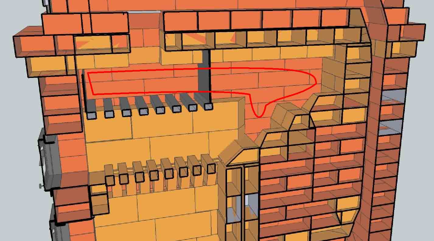 Мои опасения связаны не с тонкостями перевязки шамота и керамики, а с недостаточно надежным (на мой взгляд) перекрытия топливника, на котором держится второй ярус печи. Если сложить стенки из шамота (что для меня также и дорого), то проблемный узел останется. Нужно придумать более надежное перекрытие, при сохранении ширины первого и второго яруса.
