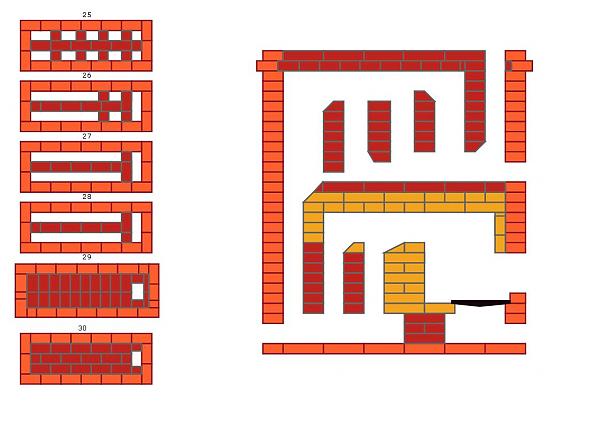 2. Шамот перемешан с керамикой, когда они пересекаются в одном ряду. Есть множество печей в книгах (н-р Порфирьева) и уже построенных, которые стоят и не разваливаются. Грамотно перевязывать надо. У меня же полностью ряд из шамота и с керамикой не как не перевязан, он лежит на ней.