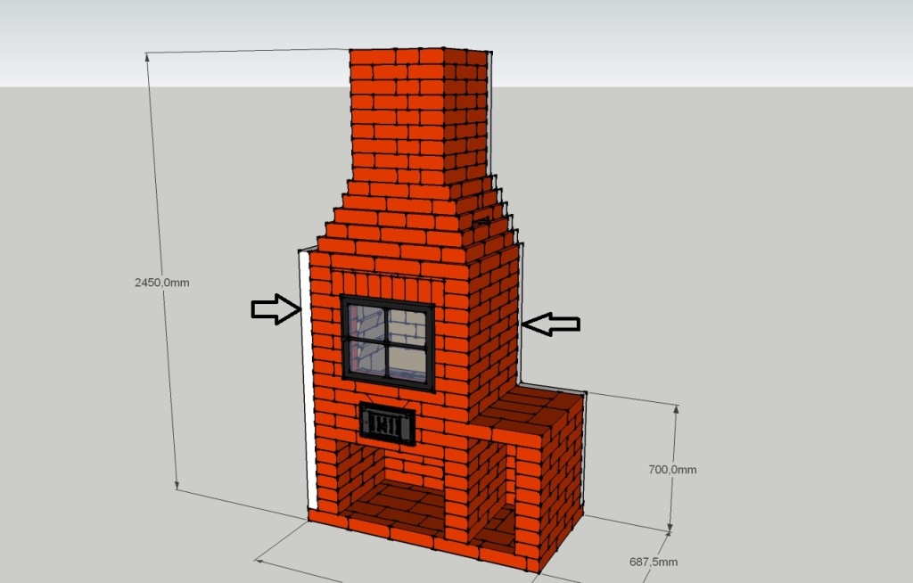 День добрый. Как раз в тему получится что ни будь хорошего. Был у одного горе заказчика сложили ему барбекю в бане. И сложили мастера плотники и по совместимости печники высшего разряда. Фото прилагаю сего чуда. Размер маленький самой печечки. Вот наваял по хотелкам макетик. Да вопросик имеется. Что если между стеной которая обшита вагонкой и печечкой проложить лист суперизола как думаете хватит что бы дерево не тлело и не загорелось. Макетик с каминой дверцой. Да и самое интересное между этим сооружением и стенкой в целях пожарной безопасности проложена обыкновенная пищевая фольга. Да и пода нет.....Просто нет а лежит кусок кровельного метала.