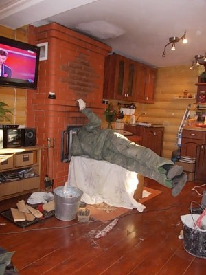 Так внутренняя футеровка вся снимается и ставиться новая.Дотянуться не проблема,если живота нет.Наружняя часть держит верхнюю часть шамотного ядра.А ХК или каменку делать ложком
