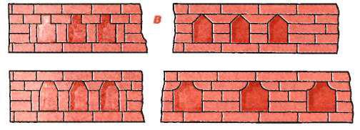 Над печурками обычно клали еще два ряда кирпичей, а затем сверху настилали так называемую перекрышу — верхнюю горизонтальную площадку, перекрывавшую печь над тем участком, где находилось горнило.