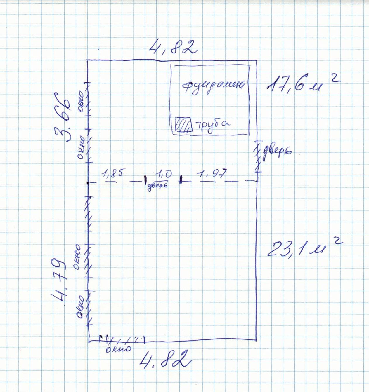 Правильно, надо всё расчертить с размерами. По моим прикидкам щиток от топливника с плитой вытянется на 1,6 м, с тем, чтобы совместить в себе трубу и выход на комнату...не красиво как-то.