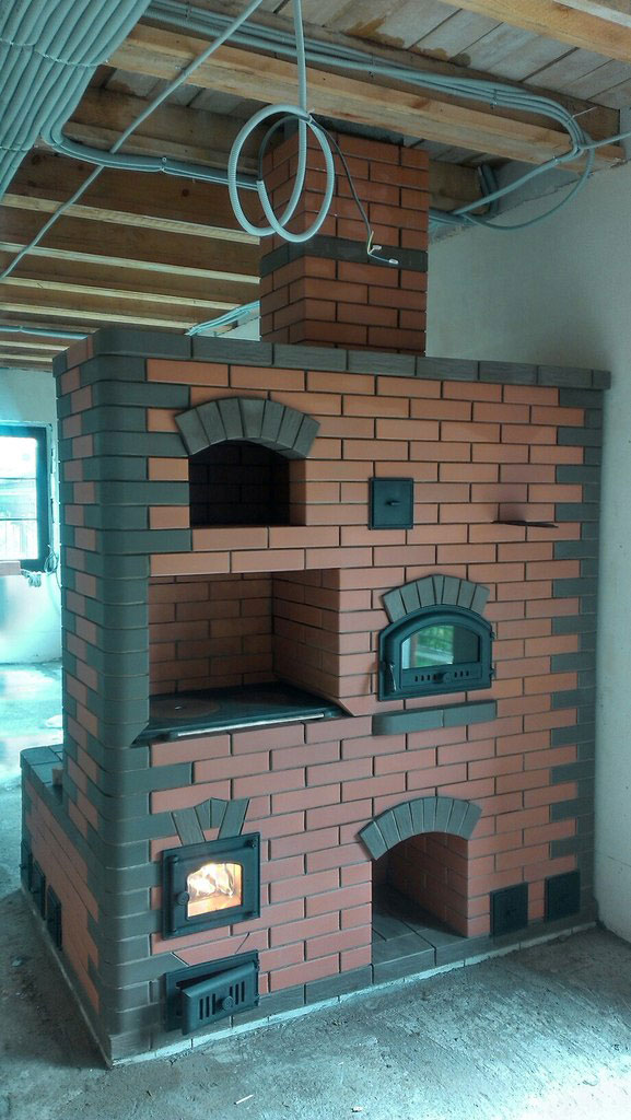 Не верите и это правильно я тоже пока сам не сделал только тогда убедился . В данной печи самой фото ХК после вытопа нет . Само фото прислал заказчик на почту что удалось приготовить . По дальнейшей кладки таких печей в инете встречаю их модификации. Предположу они имеют место быть и выполняют рад функции которые на них возложены . 1) отопление 2) готовка на плите 3) в хк 4) как вижу по фото в низу народ пристраивает еще лежанку. Напрашивается два вопроса 1)если все так плохо почему народ строит? 2) и зачем придумывать новое если в Теплушках типа РТИКА все уже есть. Расположение хк определяет размер -планировка -личные привычки и т.д поэтому ее ставят и верх и в бок. Но вот расположения где хк за плитой ,жутко неудобно из жара плиты и мощного излучения через стекло дверки . А если над плитой арка или перекрытие упирающие в голову контролирование приготовление пищи превращаеться в цирковое шоу с ухватами -прихватами чугунками-противнями и т.д. В таких печах есть под из шамота поэтому классический способ сжигание дров некто не отменял, как раз летом очень хорош.