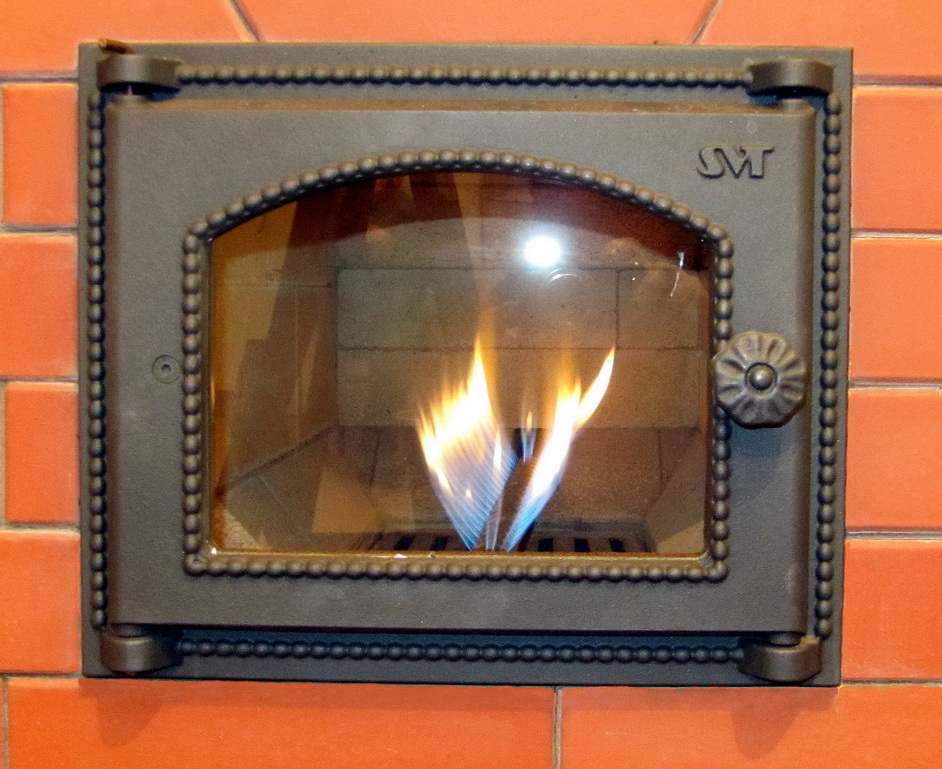 Если рассматривать дровяную печь, то топка из комнаты отдыха, оформленная в виде портала с панорамной дверцей.