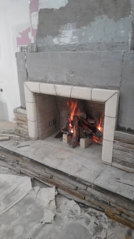 стене, на которой был камин внешней и оттуда в канал воздух попадает в два отверстия в камеру сгорания