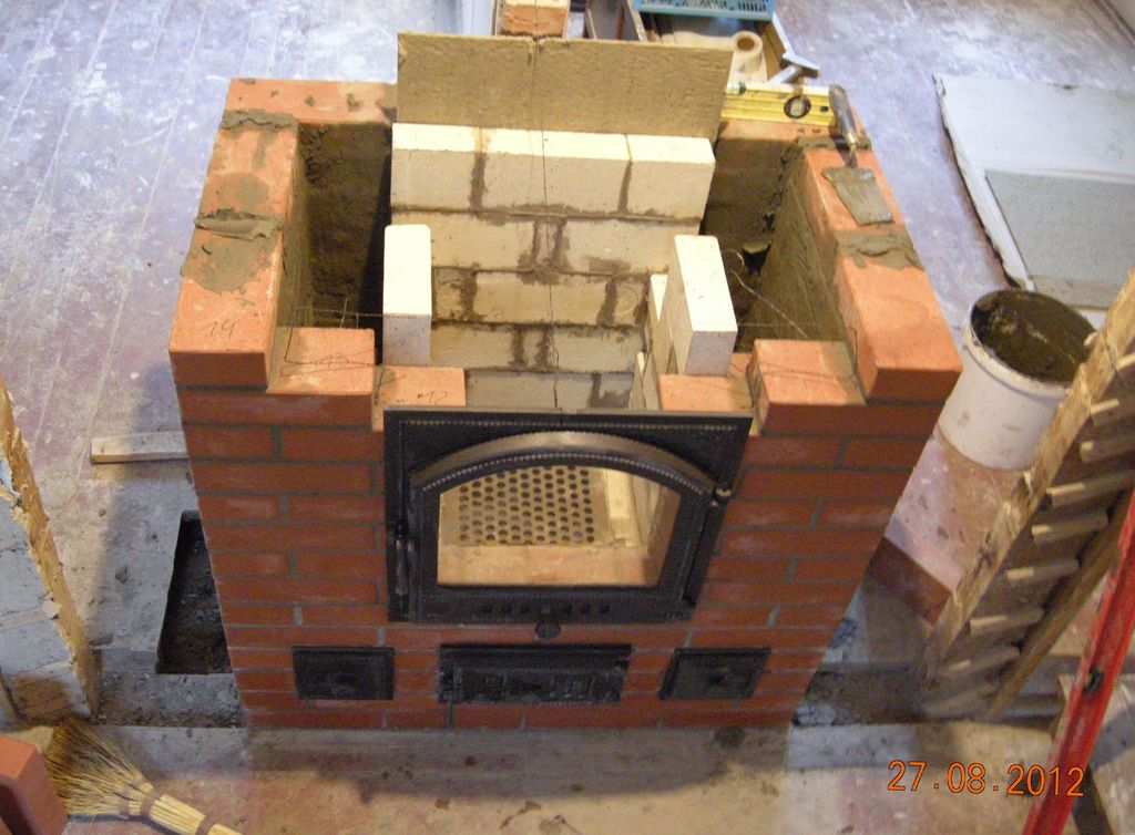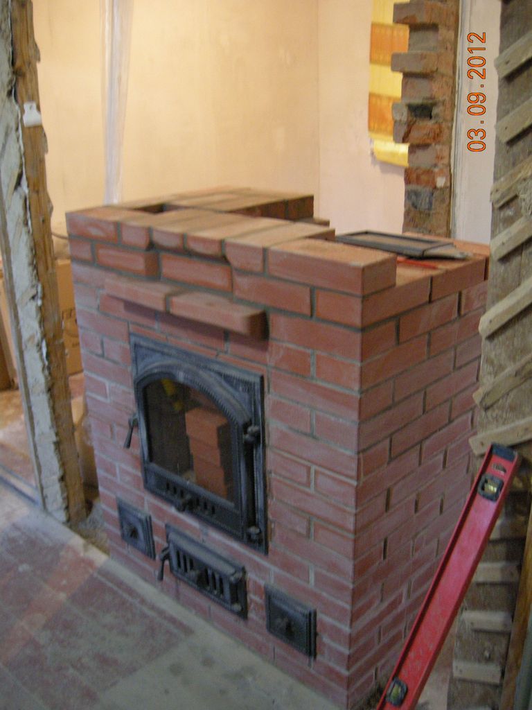 1.Как перекрыли топливник без шамотных плит? и главное шамотный проем над топочной дверкой. Из фоток ничего не видно.