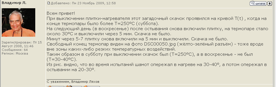 Так а в чем же правота Дмитрия? Из приведенной выше таблицы видно, что вопреки его заявленим, теплопроводность "усредненного" камня гораздо выше "усредненного" шамота.