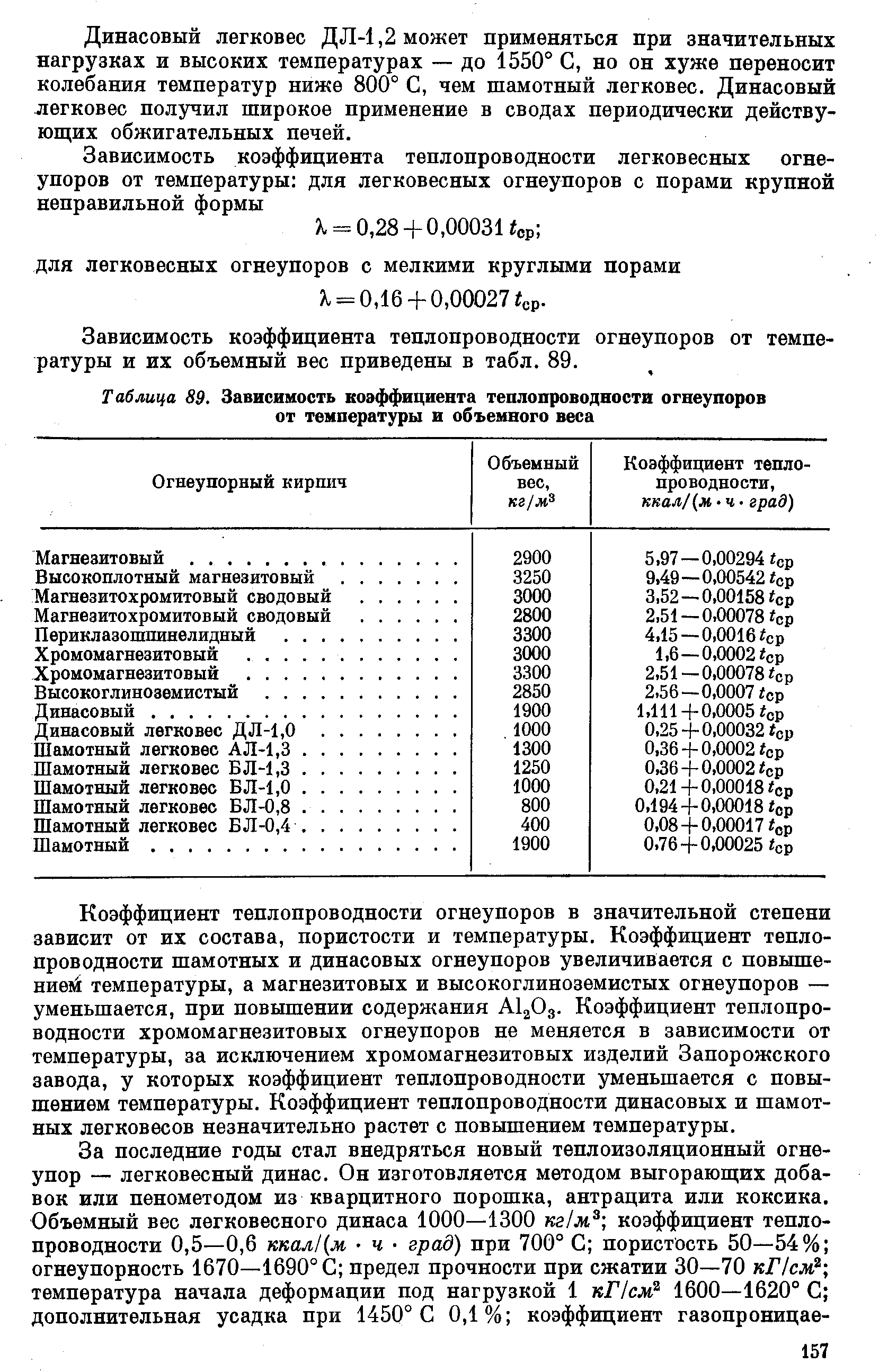 С увеличением температуры коэфициент теплопроводности шамотов увеличивается на 25*10(-5)Тср, а магнезитовых пород уменьшается на 25*10(-4)Тср. Теплопроводность магнезитовых материалов при 20*С составляет около 6 вт/м*гр, а шамотный около 1 вт/м*гр.