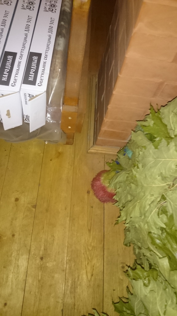 Как видно из снимков бревна внутреней стены (за ней парная), пожходят прямо к печке и закрыты были наличником.