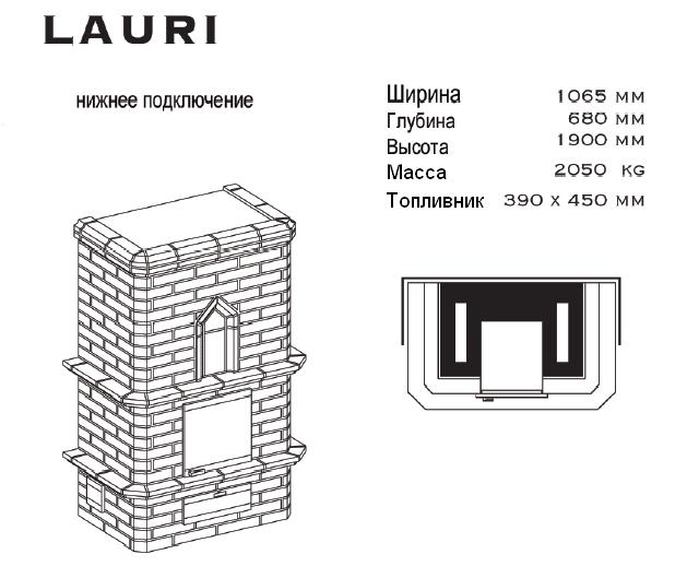 Теперь по существу вопроса John’a. Мне тоже не нравится, когда косвенно мощность печи выражают через отапливаемую площадь. Проведем самый примитивный прикидочный расчет мощности печи Лаури, указанной на рисунке.