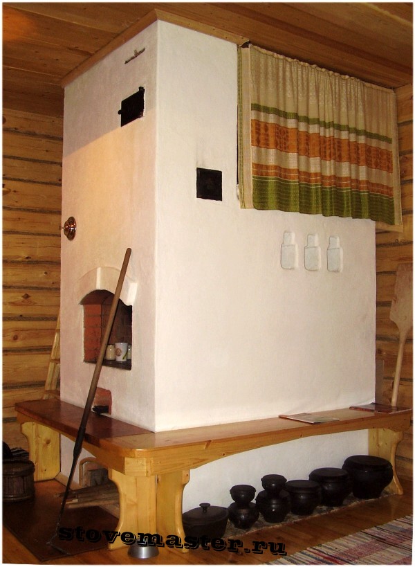 "Завершение работ по установке печи отмечали всей семьей в тот же день обильной трапезой с пивом и самогоном, приглашая всех «помочан», если работали «по помочи», или мастеров, если их нанимали на работу."
