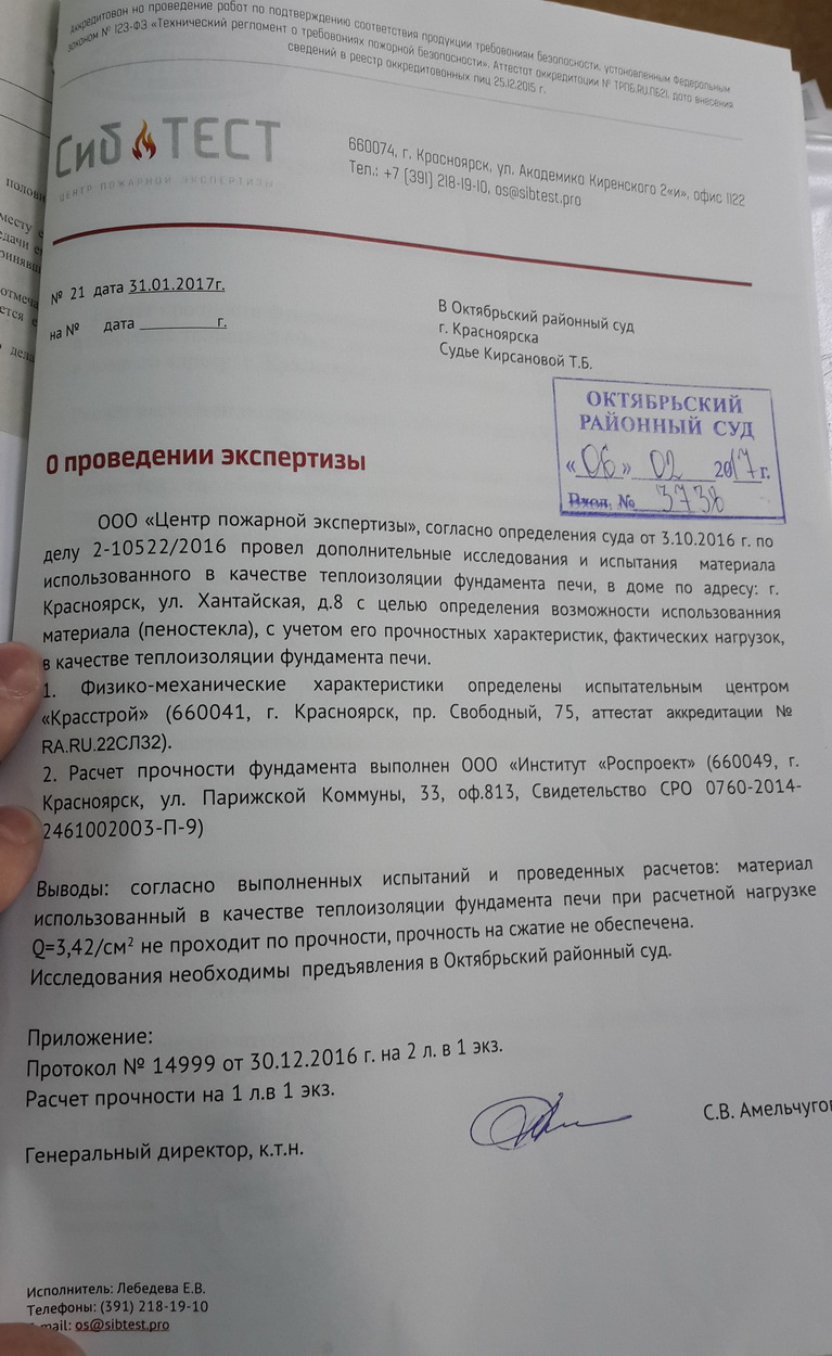 В экспертном заключение эксперт все надумывает так, как необходимо для истца - под снос печи, (предполагаю) заведомо зная, что суд не будет ничего проверять. Так все и прошло ...