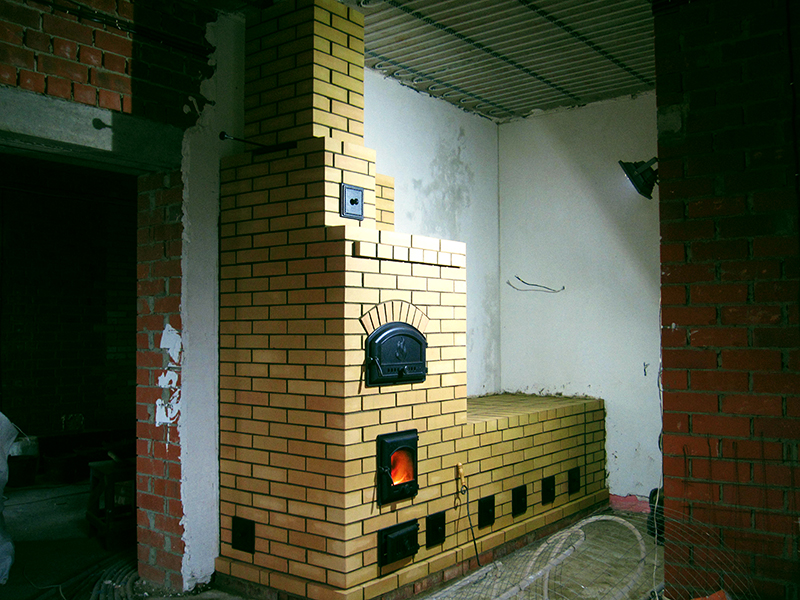 Проектировщики дома об этом не думали. Печь запланировали просто, чтоб была, задвинув её в угол и не думая, как отапливать соседние комнаты, пока нет газа и т.д. Я предлагал хозяевам варианты, но построенные стены крушить никому не охота.