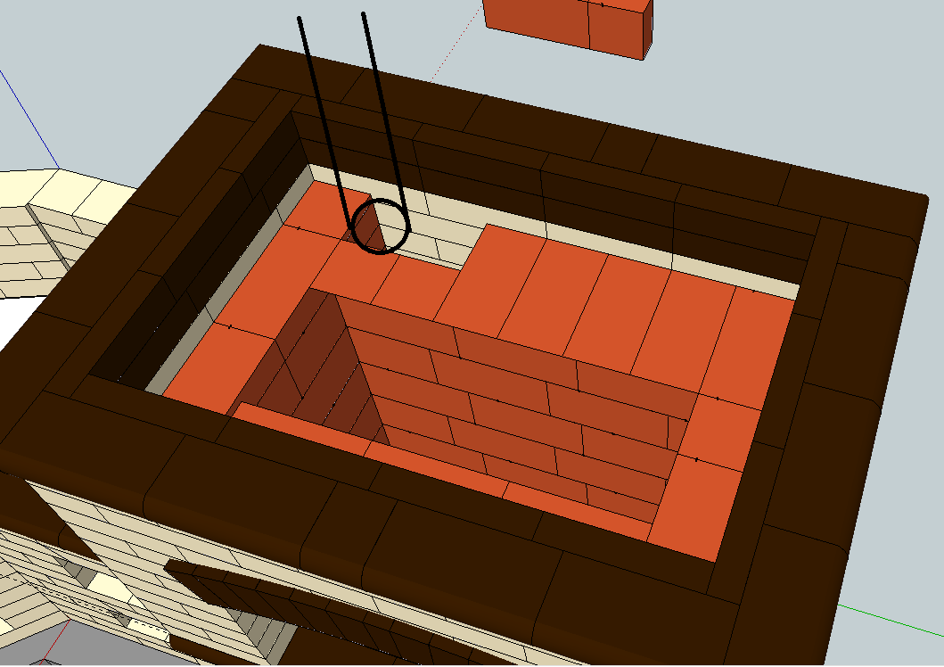 Конечно я понимаю, что при проектировке комплекса, ввиду осутствия спец.знаний и опыта допустил ошибки, которые теперь доставляют проблемы и тормозят работу. Когда делал 3D модель хотел, чтобы стенки мангала были симитричными в кирпич и добавлдять дыможоды с бокову, пусть с небольшим выступом в пол кирпича не захотел. О чем теперь жалею.