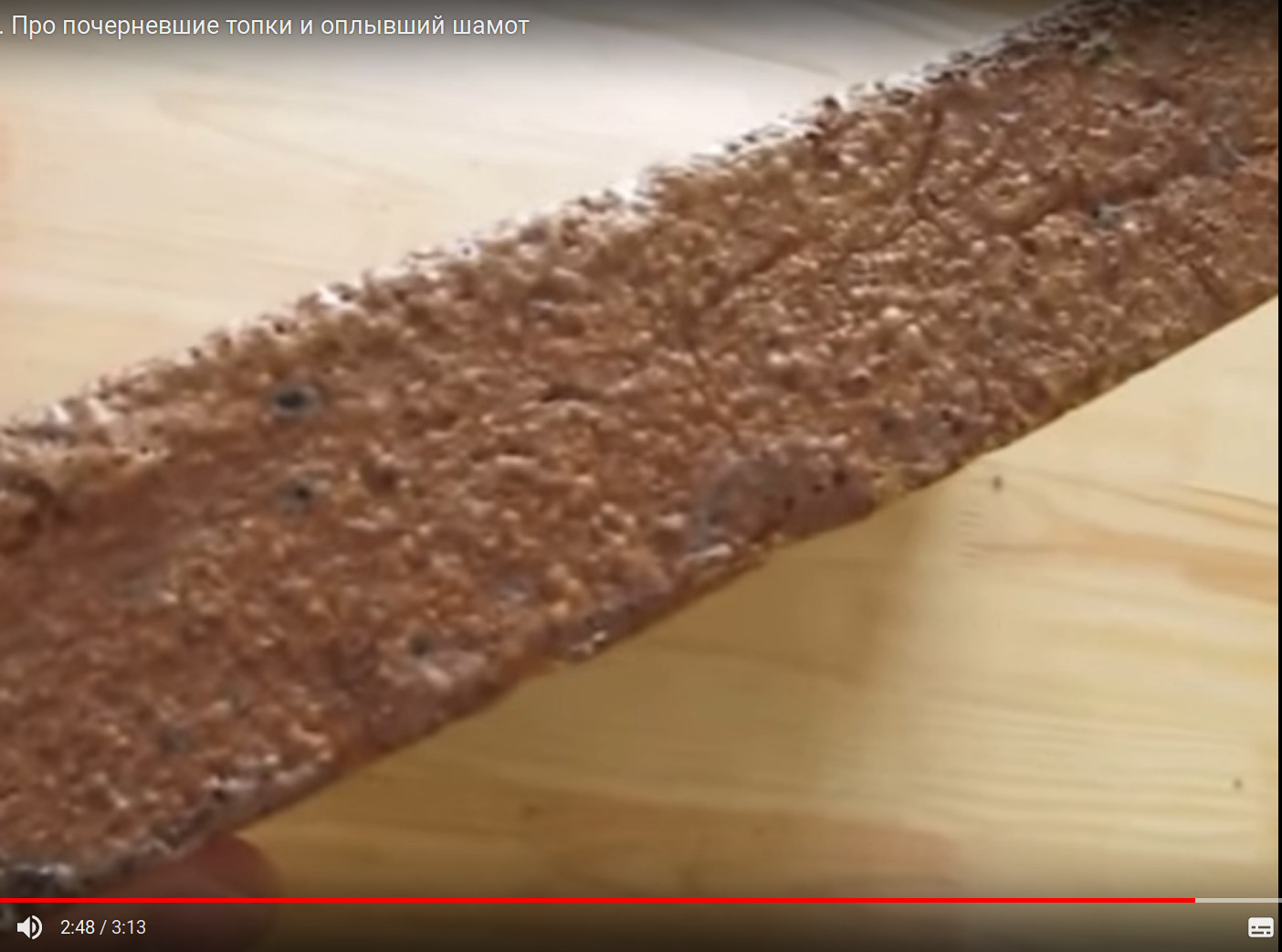 В ролике «Про почерневшие топки и оплывший шамот» автор указывает на то, что при температурах, опять же порядка 900 С, происходит закипание жидкого стекла и почернение и т. п. Кирпича. См. фото.