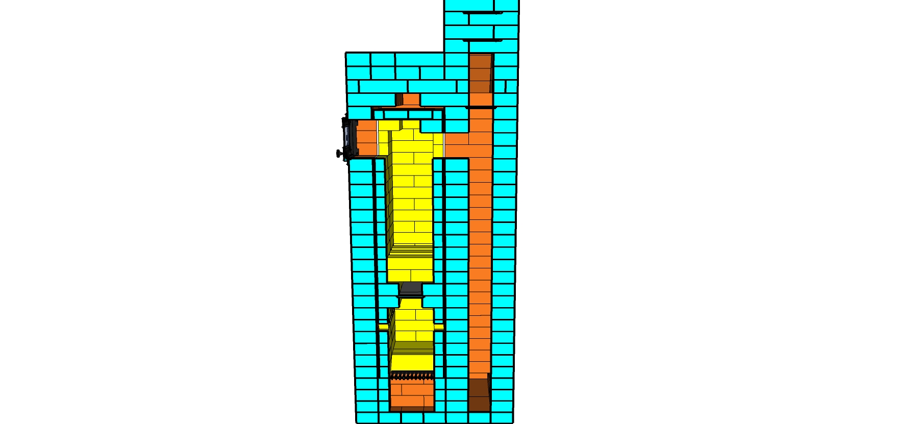 Это и есть шамотный сердечник полностью без облицовки. Там есть и бандаж. Это по моему проекту 10-летней давности переведено в скетчап.И переведено без изменений.