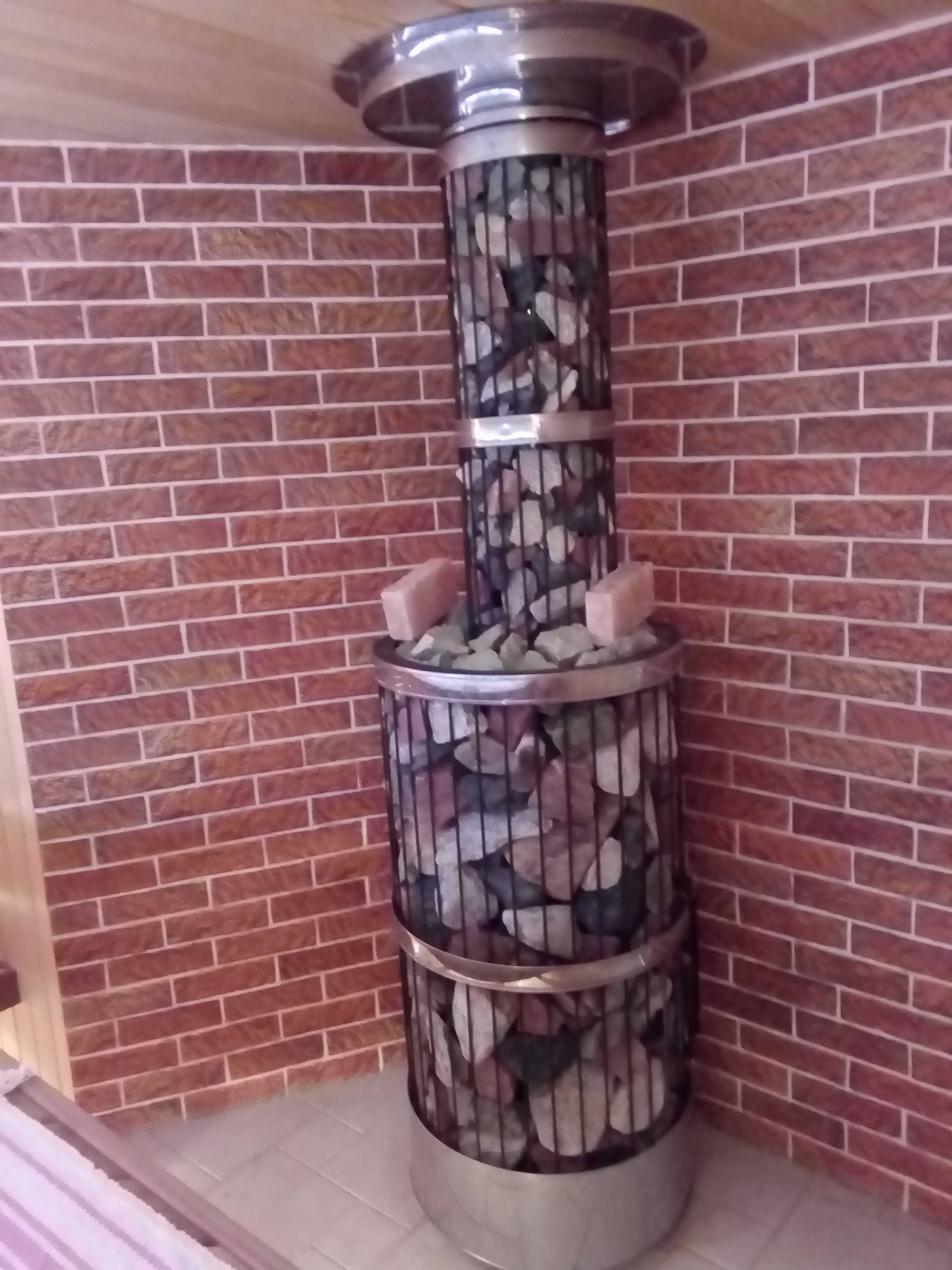 Собираю метал.банную печь. Высота потолка в парной 2 метра сборка по стандарту от печи переход на двустенный дымоход затем потолочный узел и.т.д. А хотелось вместо перехода на двустенную трубу поставить одно стенную трубу изготовит сетку и заложить камнем так и получим дополнительное тепло в парилке это не ноу-хау делают многие только есть у меня загвоздка и соображения по этому поводу. То есть ...... Собрать в таком порядке. Печь от неё шибер+одностенную нерж.+потолочный проход как вариант который предложил Евгений Колчин фото прилагаю в коробе сделать отступы от трубы по 200 мм до стенок короба и заполнить коалиновой ватой или суперсилом далее в под чердачном помещении установить старт на двустенную трубу и через кровлю на улицу. Идея воплотимая но сомнения по поводу потолочного прохода. Есть соображения..........