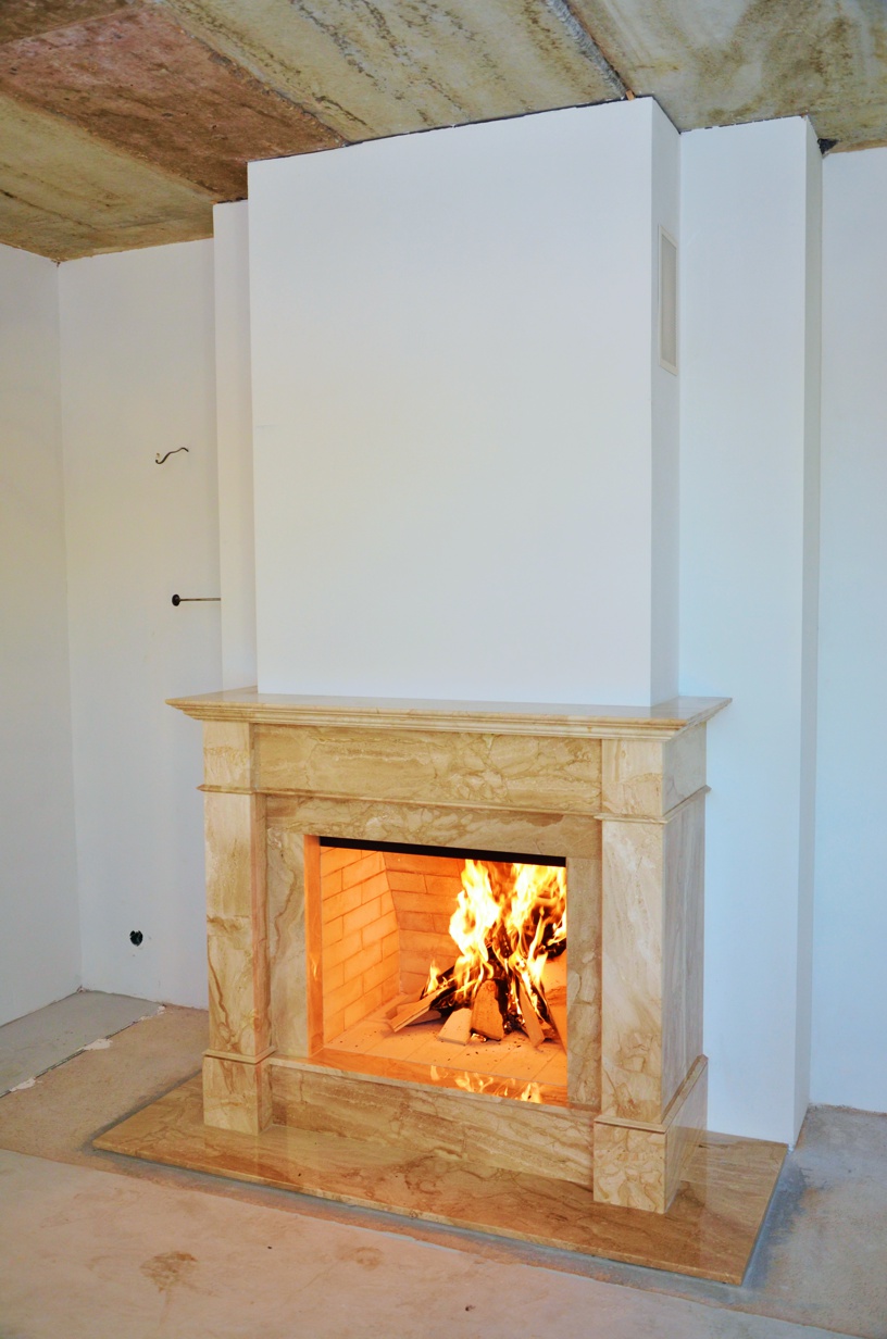 Камин с мраморным порталом. мрамор Крема Нова + оникс Карамель.