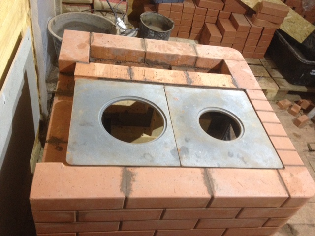 Дверку лучше прекрывать балкой на шпилькой а не напуском в расклин, верхние ряды не будут разезжаться . Плиту лучше брать двух секционную чугунную меньше подвержена деформации и трещеобразованию убить можно но ненужно бак 100 литров держит . Если запилить пазы в красном кирпиче а шамот подрезать под углом в топке .Площадь плиты станет больше омываться огнем значит можно поставить не три кастрюли с вареньм а целых ЧЕТЫРИ .