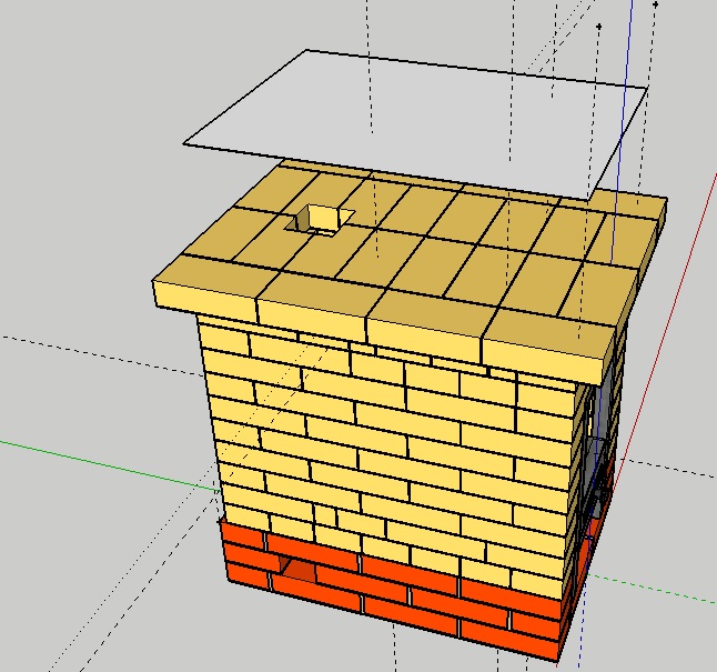 2. На такой дырявый шамотный слой можно сверху положить металлический лист, допустим 0.7-1 мм , который даст газоплотность и более равномерно распределит температуры по перекрышке топливника. А уже сверху на лист начать кладку красного яруса.