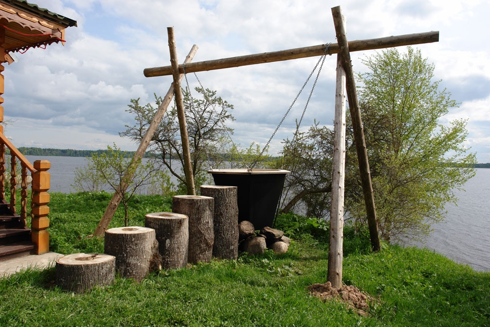 Костёр под чаном такое кол-во воды (на 4 человек) не сильно разогревает и по началу кайфа (кроме вида) не много. Т.е. просто теплая вода, чудо ощущаешь позже - когда после этой теплой ванной окунаешься в Селигер. Вот тогда, Селигер, уже кажется зимней прорубью - холод просто обжигает. Хотя дело происходило в июле! И это только полдела. Самые яркие эмоции ощущаешь, когда после Селигера идешь обратно в чан над костром. Вот тогда уже эта теплая водичка реально кажется кипятком. И погружение по миллиметру занимает не одну минуту. Потом привыкаешь и вроде опять теплая. И так по кругу. Прорубь - кипяток - прорубь - кипяток... А тут еще и натуральный свой квас к этому делу подают. Ощущения словами не описать. Память на всю жизнь...