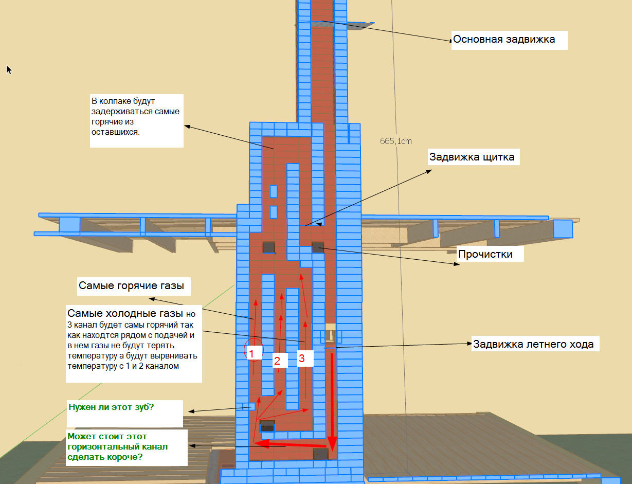 Будет, но не долго... не знаю, как вы будете чистить эту конструкцию от сажи. Это проекты печников прямоточников для дачного хозяйства, с периодичностью эксплуатации два раза в год. Потом дрова в трубу ... |