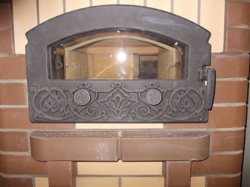 Крышка дверки оснащена вставным стеклом германской фирмы "ROBAX", максимальная температура устойчивости 760 °C.