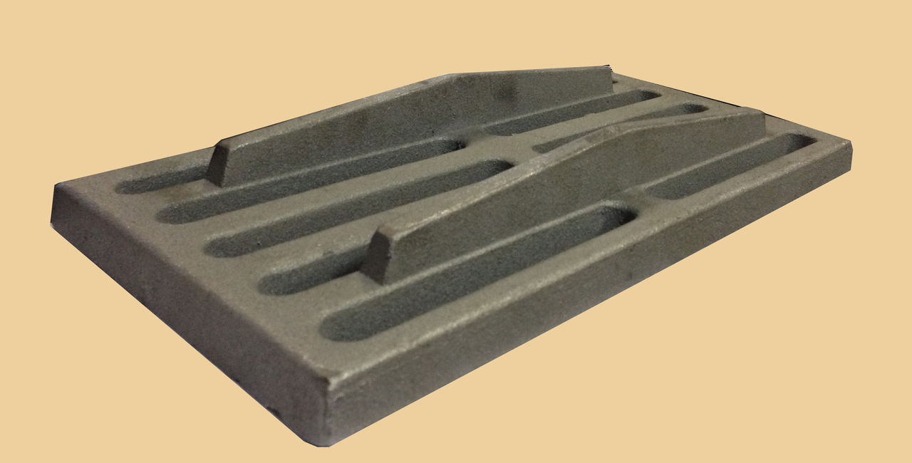 1. На первый ряд укладываем чугунные балочки ( кирпичи) размером 60х120х380 мм: 5-8 шт., расстояние между балочками 4-5 см. Марка чугуна желательно ЧХ-16, но можно и обычный серый чугун марки СЧ-20. Этот ряд воспринимает тепловую нагрузку. Балочки лежат свободно.