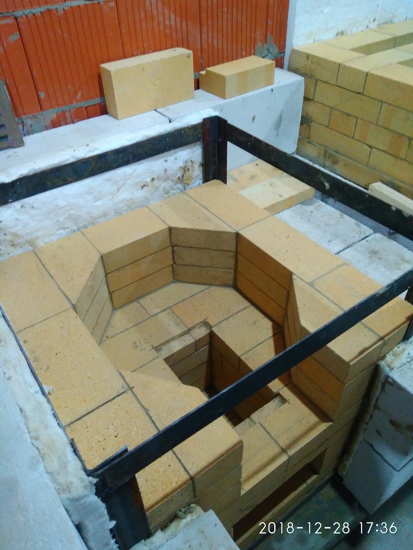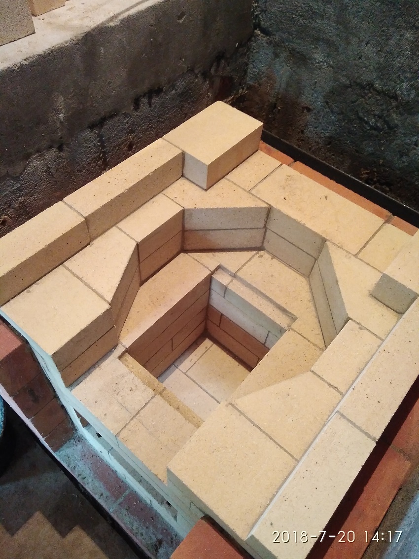 Хочу две лицевые стенки комплекса выложить шамотом, а две стенки, которые будут обращены к стенам сруба - витебским красным.
