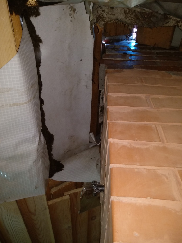 Обращает внимание на себя кладка трубы, там где она была не видима!