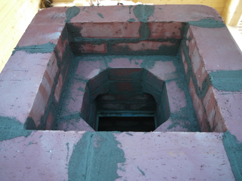 Если кирпичную дырку сделать покруглее, то можно сколхозить и без опорной площадки. Явное преимущество в том, что сэндвич можно будет легко менять без разборки кирпича. Дополнительная вата вокруг сэндвича, думаю, лишняя, достаточно только в самом низу для герметизации стыка. На фото Крафт. Базальтовая вата прикрыта Суперсиликой, ей же проложен стык: