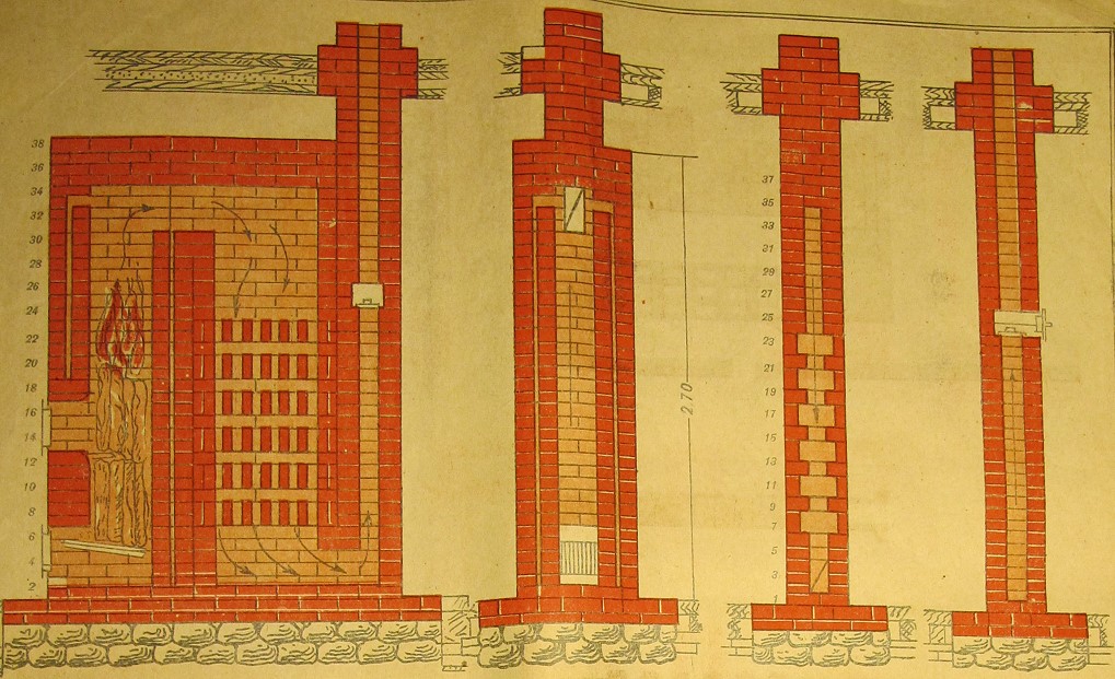 У нас на Урале были дома где встроены дымовые каналы прямо в во внуртение стены -а топливники в подвале. Мне предлагали всю систему отреставрировать. Потом просто всё захоронили в стенах. А печки в подвале снесли по варварски. Хороший старинный кирпич чучмеки на свалку вывезли. Были там и изразцовые печи в некоторых комнатах -кувалдами раздолбали также чучмеки.Этот вариант думаю лучше. Жаровые каналы будут пылюку нагонять из подвала.