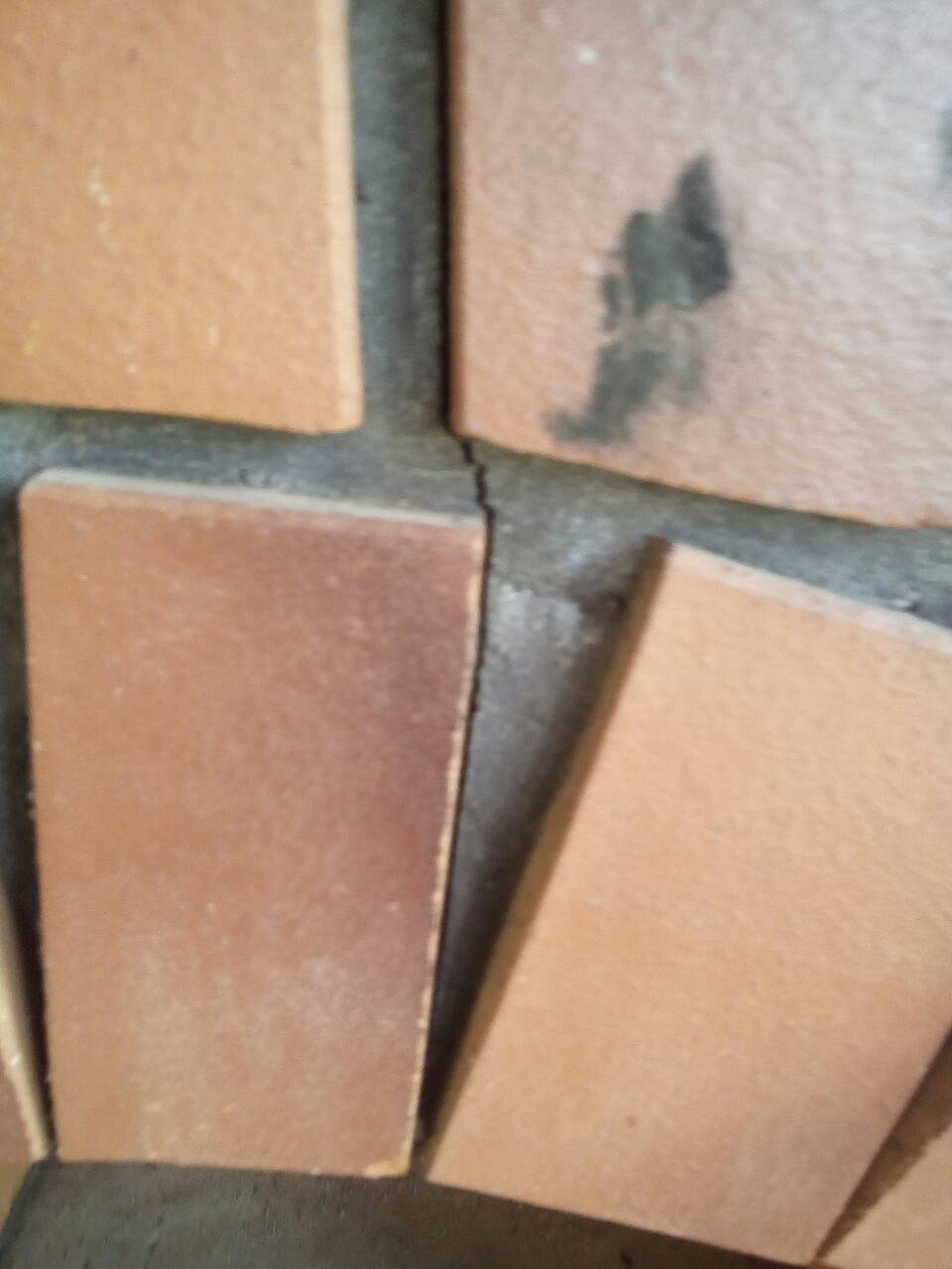 Я тоже не увидел зазора между огнеупором и отделкой; похоже элементарно "шамот рвёт керамику"(как раз нижний пояс).