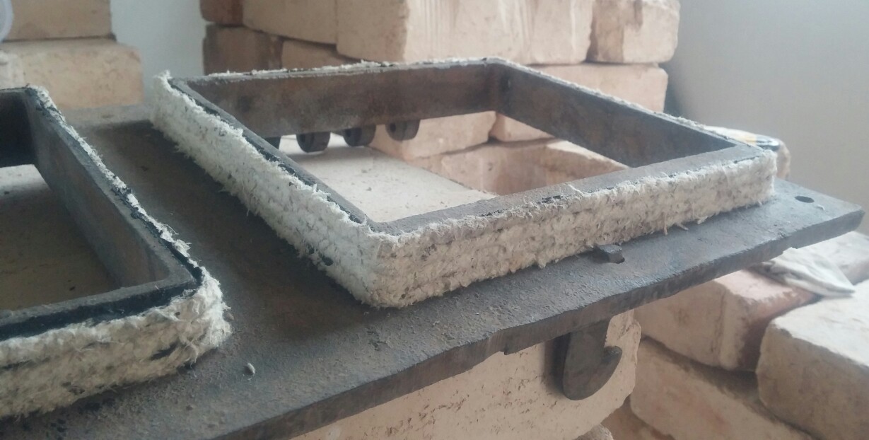 Завтра пойду искать нержавейку, чтоб кирпич в районе топочной дверцы закрыть (думаю прикрутить ее болтами в раме дверцы) и нихромовую проволоку (буду использовать для крепления дверцы сверху, так как полоса там будет выходить на футеровку да и температура там больше, расширятся, наверное, будет сильнее, чем проволока)
