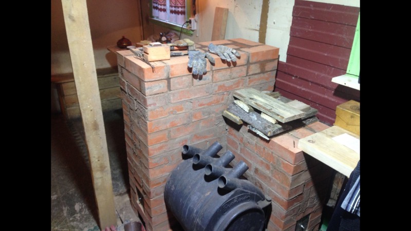 3. снять верхний ряд кирпичей,для возможности приподнимать печь на домкратах.