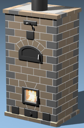 | Печка у вас явно не дачная. Мощное шамотное ядро и красная стенка на плашку - прогреваться будет долго. Что бы прогреть такую шамотную массу надо много дров спалить. Шамот нужен как футеровка топливника и ХК , а несущий теплоемкий каракас лучше из красного строить. |